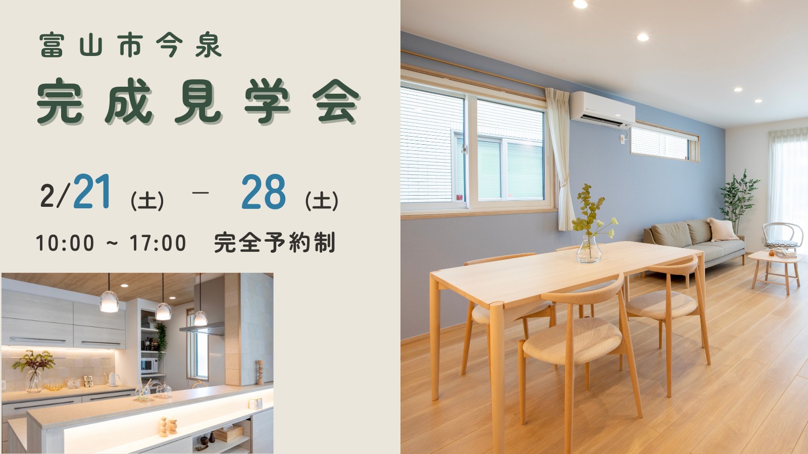 富山市今泉けやき台 完成見学会開催(2/21〜2/28)